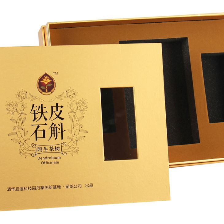 الألوان الكاملة المخصصة المطبوعة على غطاء مع شعار تم تنقش، فتح اثنين من النوافذ الصغيرة لعرض أفضل داخل الهدايا، علبة على داخل القاع مصنوعة من الاسفنج الأسود مغطاة البني لاصقة أفخم، لمطابقة أفضل الذهب علب الهدايا ،